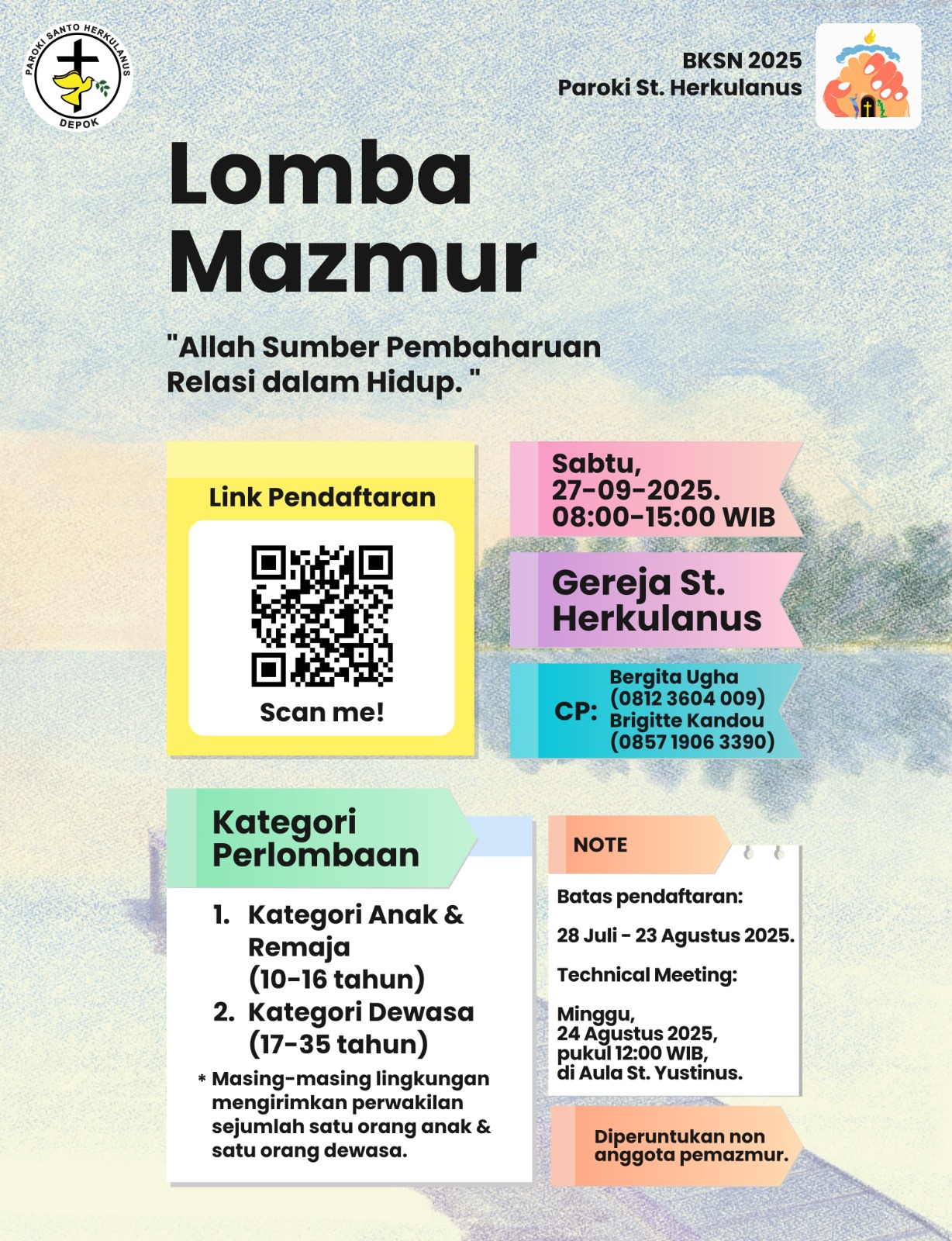 Gereja dan Paroki Herkulanus sebagai bagian dari Keuskupan Bogor, memanggil semua umat Katolik, dari berbagai rentang usia untuk terlibat secara aktif membangun Gereja di setiap bidang, sesuai kemampuan dan talentanya masing-masing.